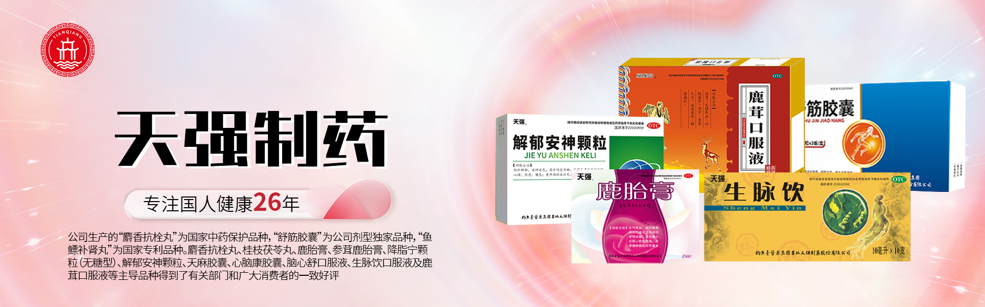 釣魚(yú)臺(tái)醫(yī)藥集團(tuán)吉林天強(qiáng)制藥股份有限公司地處素有“世界生物資源寶庫(kù)”之稱(chēng)的長(zhǎng)白山脈龍崗山下,公司坐落在被中國(guó)醫(yī)藥質(zhì)量管理協(xié)會(huì)冠名的“中國(guó)醫(yī)藥城”的通化市柳河縣。得天獨(dú)厚的自然條件和資源優(yōu)勢(shì),使公司在藥企林立的醫(yī)藥山城別具特色而享譽(yù)國(guó)內(nèi)。公司成立于1999年9月,占地面積為2.73萬(wàn)平方米,建筑面積為1.4萬(wàn)平方米,注冊(cè)資金為5000萬(wàn)元。現(xiàn)有員工210人,各類(lèi)技術(shù)人員54人。依靠獨(dú)特的地理環(huán)境,天強(qiáng)人用心經(jīng)營(yíng),不斷進(jìn)步,公司在生產(chǎn)檢驗(yàn)上嚴(yán)格按照國(guó)家GMP相關(guān)規(guī)定執(zhí)行,確保產(chǎn)品質(zhì)量?jī)?yōu)良,療效上乘。企業(yè)先后被授予“國(guó)家級(jí)高新技術(shù)企業(yè)”、“國(guó)家級(jí)守合同重信用企業(yè)”、“吉林省專(zhuān)精特新企業(yè)”、“吉林省農(nóng)業(yè)產(chǎn)業(yè)化龍頭企業(yè)”、“吉林省首批人參種植產(chǎn)業(yè)化25戶(hù)企業(yè)之一”、“吉林省新產(chǎn)品開(kāi)發(fā)先進(jìn)單位”、“吉林省經(jīng)濟(jì)技術(shù)創(chuàng)新單位”、“吉林省重點(diǎn)納稅大戶(hù)企業(yè)”等榮譽(yù)稱(chēng)號(hào)。“天強(qiáng)”、“益壽通”商標(biāo)被評(píng)為吉林省著名商標(biāo)。公司于2002年進(jìn)行移地GMP改造,陸續(xù)完成并通過(guò)6個(gè)生產(chǎn)車(chē)間,8條生產(chǎn)線(xiàn)的GMP認(rèn)證。 釣魚(yú)臺(tái)醫(yī)藥集團(tuán)吉林天強(qiáng)制藥股份有限公司注冊(cè)的多個(gè)品牌已在國(guó)內(nèi)各地形成相對(duì)健全的銷(xiāo)售網(wǎng)絡(luò)。公司生產(chǎn)的“麝香抗栓丸”為國(guó)家中藥保護(hù)品種,“舒筋膠囊”為公司劑型獨(dú)家品種,“魚(yú)鰾補(bǔ)腎丸”為國(guó)家專(zhuān)利品種。麝香抗栓丸、桂枝茯苓丸、鹿胎膏、參茸鹿胎膏、降脂寧顆粒(無(wú)糖型)、解郁安神顆粒、天麻膠囊、心腦康膠囊、腦心舒口服液、生脈飲口服液及鹿茸口服液等主導(dǎo)品種得到了有關(guān)部門(mén)和廣大消費(fèi)者的一致好評(píng)。 公司于2006年建成了中藥材示范基地。目前擁有102公頃中藥材種植基地,完成了中藥材五味子、林下參的規(guī)范化種植栽培。同時(shí),企業(yè)建有梅花鹿馴養(yǎng)基地、林蛙養(yǎng)殖基地。未來(lái)企業(yè)將進(jìn)一步擴(kuò)大中藥材種植及梅花鹿、林蛙養(yǎng)殖,并帶動(dòng)周邊農(nóng)戶(hù)的中藥材種植熱情,真正起到農(nóng)業(yè)產(chǎn)業(yè)化龍頭企業(yè)的作用。 公司自1999年成立至今,已與吉林大學(xué)、長(zhǎng)春中醫(yī)藥大學(xué)、吉林省中醫(yī)藥科學(xué)院、長(zhǎng)春新紀(jì)元中藥研究所、北京歐克蘭醫(yī)藥技術(shù)開(kāi)發(fā)中心等大專(zhuān)院校和科研院所密切合作。2016年10月,公司與中國(guó)中醫(yī)科學(xué)院醫(yī)學(xué)實(shí)驗(yàn)中心簽訂了合作框架協(xié)議,在中醫(yī)藥新產(chǎn)品研發(fā)、中藥產(chǎn)品再評(píng)價(jià)與深度開(kāi)發(fā)、中藥質(zhì)量、人才培養(yǎng)等方面與公司進(jìn)行深度合作。2018年2月,公司又與吉林大學(xué)食品科學(xué)與工程學(xué)院建立了教學(xué)科研創(chuàng)新實(shí)踐基地,在保健品、特殊醫(yī)學(xué)食品研發(fā)及人才培養(yǎng)方面開(kāi)展深度合作。在新的企業(yè)發(fā)展戰(zhàn)略背景下,公司在原有條件的基礎(chǔ)上引入更加先進(jìn)的研發(fā)設(shè)備和高端人才,重點(diǎn)發(fā)展保健食品及特殊醫(yī)學(xué)食品開(kāi)發(fā)、中藥品種二次開(kāi)發(fā)等大健康領(lǐng)域產(chǎn)品。同時(shí)開(kāi)放中心檢測(cè)技術(shù)為本地相關(guān)制造業(yè)服務(wù),為社會(huì)和企業(yè)創(chuàng)造更高的價(jià)值。在科技投入上,企業(yè)以敏銳的視角,超前的洞察力,為企業(yè)的可持續(xù)發(fā)展奠定了堅(jiān)實(shí)的基礎(chǔ)。 企業(yè)在發(fā)展過(guò)程中,還積極投入到公益事業(yè)中,熱心的履行企業(yè)社會(huì)責(zé)任,多年捐款捐物,參與救弱扶殘、扶貧濟(jì)困、救災(zāi)重建、新農(nóng)村建設(shè)等活動(dòng)。 釣魚(yú)臺(tái)醫(yī)藥集團(tuán)吉林天強(qiáng)制藥股份有限公司以誠(chéng)信為立足點(diǎn),秉承“天強(qiáng),強(qiáng)天下百姓”這一宗旨,將以雄厚的實(shí)力,創(chuàng)新的活力,文化的魅力,在挑戰(zhàn)與機(jī)遇面前,以嶄新的面貌與廣大同仁一起攜手努力,將企業(yè)做大做強(qiáng),共創(chuàng)輝煌!